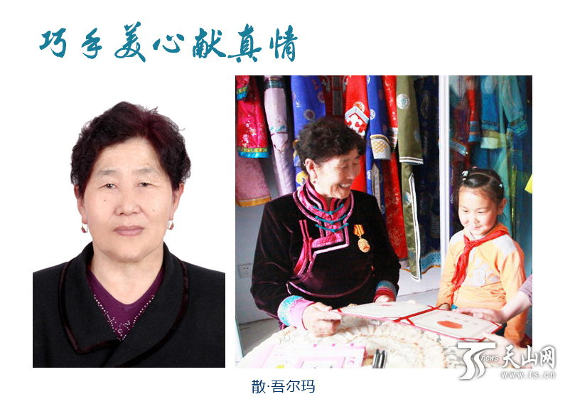 她的蒙古族服饰及传统手工艺品制作,匠心独具,产品畅销国内外。她富裕不忘群众,免费给收30多名村民传授技艺,带领大家脱贫致富。她热心帮助他人,每年都免费为村里的孤寡老人和可怜的孩子制作衣物,为困难家庭送去生活必需品和生活费,为灾区带头捐款捐物,献上一片爱心……只要别人有困难,她都会不遗余力地去帮助。她是基层群众心目中最亲近、最信任的人。