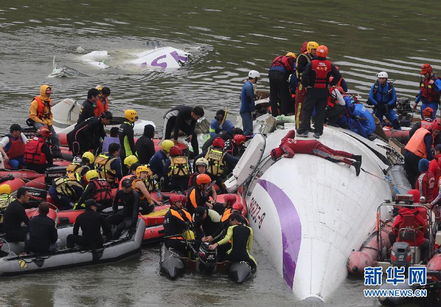 “机头栽到河里面,机身变形,机舱已经进水,行李箱和座椅很多掉下来,每次只能有一两个人进去救援,所以速度非常缓慢。”指挥现场救援的台北市消防局代理局长吴俊鸿说,有一些乘客从上游漂到了下游,生还情况不乐观。