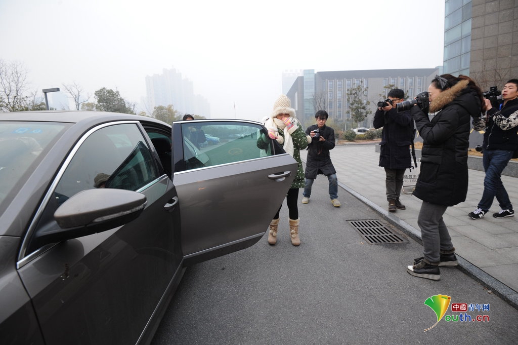 受害者周岩及其母亲到法院现场。