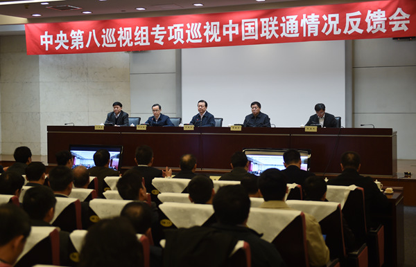 根据中央巡视工作领导小组的部署,中央第八巡视组向中国联通(以下简称联通)反馈专项巡视情况。2月4日下午,中央巡视工作领导小组成员、办公室主任黎晓宏向联通党组书记、董事长常小兵传达了习近平总书记关于巡视工作的重要讲话精神,中央第八巡视组组长宁延令、副组长丁伯东反馈了专项巡视情况。2月5日上午,宁延令代表巡视组向联通领导班子进行了反馈,常小兵主持会议并作了表态发言。
