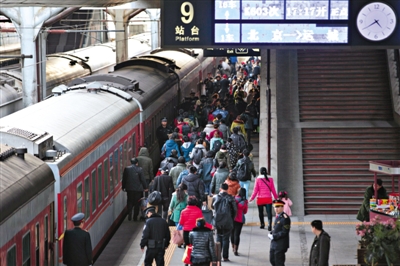 昨天2015年春运大幕正式开启,全国将有28亿人次春运大军开始“迁徙”。当天32万人乘火车离开北京,相较去年下降5万人。北京铁路局预测,出行高峰期将在2月15日(腊月二十七)至17日(腊月二十九)到来,北京站、北京西站、北京南站将开启所有服务窗口为乘客提供服务。
