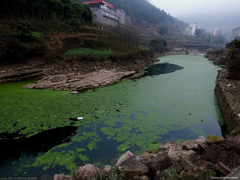重庆云阳:长江支流水质污染严重如绿色油漆 图