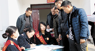 6日上午,武汉铁路局十堰车务段工作人员来到湖北省丹江口市丁家营镇花园村,为该村移民登记信息、发放返程票,让移民返程更加方便。