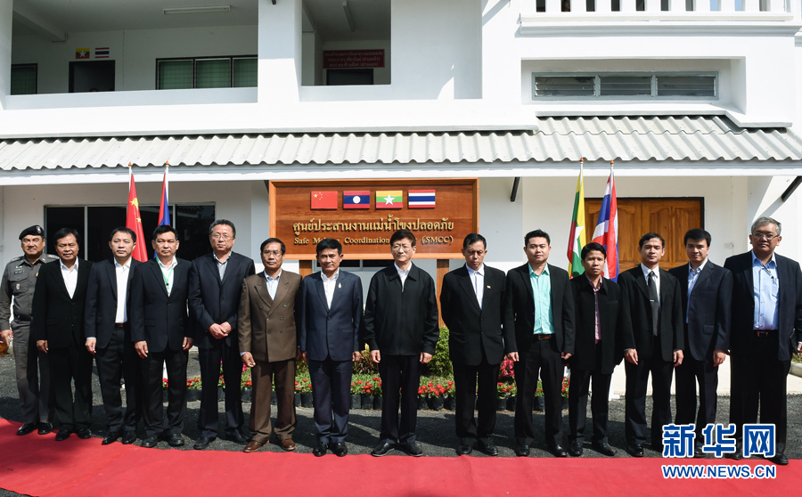 2月7日,在泰国清迈,正在泰国进行正式访问的习近平主席特使、中共中央政治局委员、中央政法委书记孟建柱(左八)在中老缅泰“平安航道”联合扫毒行动协调指挥中心与联合执法人员合影。当日,孟建柱来到中老缅泰“平安航道”联合扫毒行动协调指挥中心,看望慰问联合执法人员,听取该中心负责人关于联合扫毒行动进展情况汇报。 新华社记者李芒茫摄
