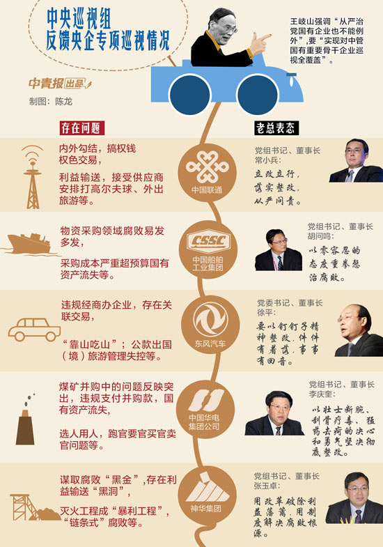 看到这个对几大央企的专项巡视问题清单,就会明白习近平总书记1月在中纪委全会上为何专门强调要“加强对国企领导班子的监督,搞好对国企的巡视,强化对权力集中、资金密集、资源富集的部门和岗位的监管”;也会明白王岐山书记在作中央纪委工作报告时特别提到国企,强调“从严治党国有企业也不能例外”,要“实现对中管国有重要骨干企业巡视全覆盖”。