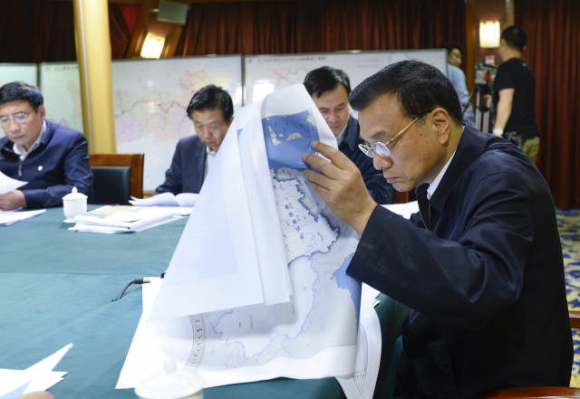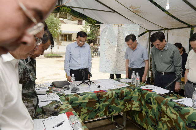 (2014年8月4日下午,李克强总理在云南鲁甸地震震中龙头山镇主持召开协调会。会前他提议全体起立,为此次地震中的遇难者默哀。)