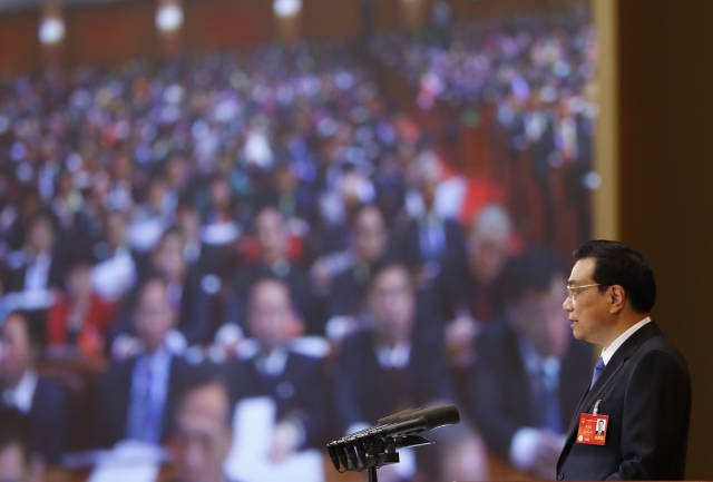 (2014年3月5日,李克强总理在第十二届全国人民代表大会第二次会议上首作《政府工作报告》。)
