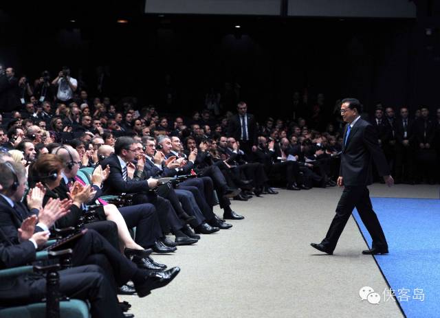 (2014年12月16日,李克强总理在第四届中国—中东欧国家经贸论坛开幕式上发表致辞后,在持续近一分钟的掌声中返回座位。)