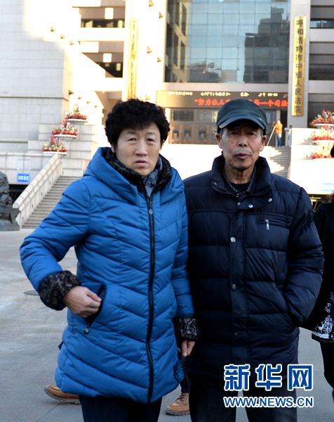 2月9日,呼格吉勒图的父亲李三仁、母亲尚爱云来到呼和浩特市中级人民法院准备旁听赵志红案宣判。当日,内蒙古自治区呼和浩特市中级人民法院就赵志红故意杀人、强奸、抢劫、盗窃案,公开开庭宣判。赵志红案宣判,法院是否认定其是“呼格案”真凶,成为人们关注的焦点。新华社记者 任军川 摄