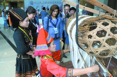 2013中国—东盟职教联展论坛学校壮锦织造技艺深受外宾欢迎