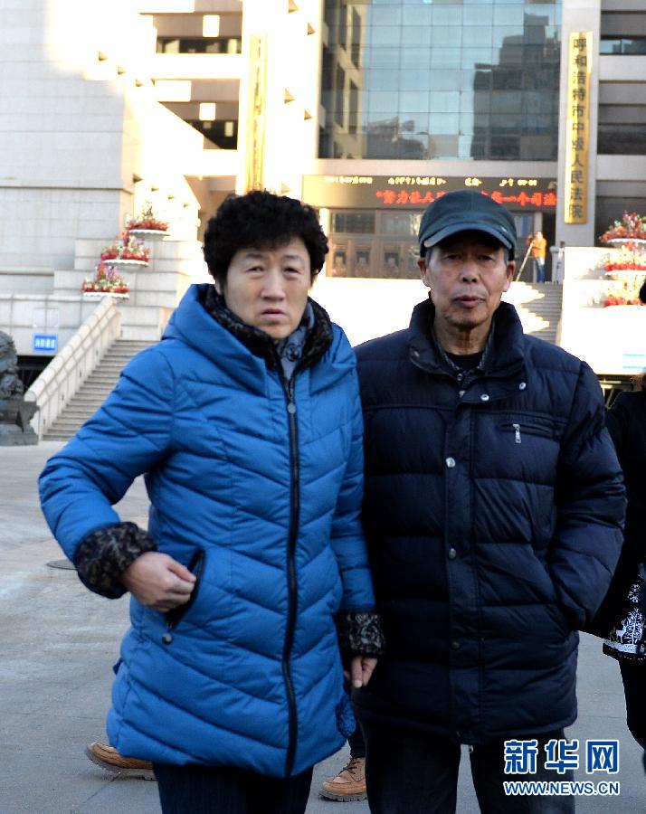2月9日,呼格吉勒图的父亲李三仁、母亲尚爱云来到呼和浩特市中级人民法院准备旁听赵志红案宣判。当日,内蒙古自治区呼和浩特市中级人民法院就赵志红故意杀人、强奸、抢劫、盗窃案,公开开庭宣判。赵志红案宣判,法院是否认定其是“呼格案”真凶,成为人们关注的焦点。新华社记者 任军川 摄
