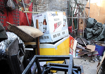 昨日,李志捷从废品站买回来的物品全堆放在房前角落,此前,这些物品在联合执法中被查扣,而次日,李志捷在废品站发现了它们。