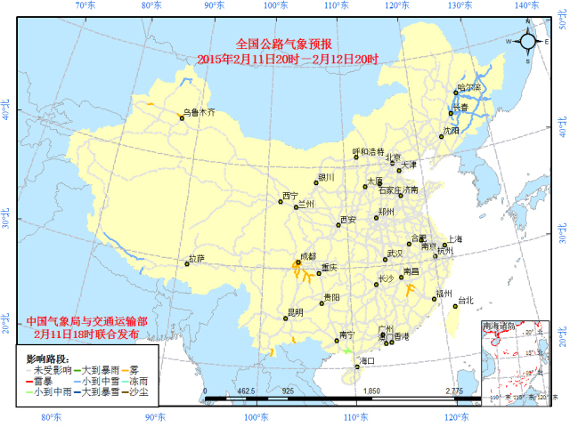 中国气象局与交通运输部联合发布全国主要公路气象预报