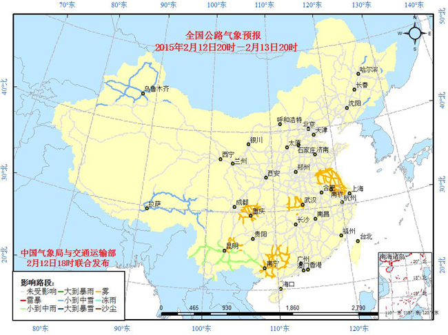 中国气象局与交通运输部联合发布全国主要公路气象预报: