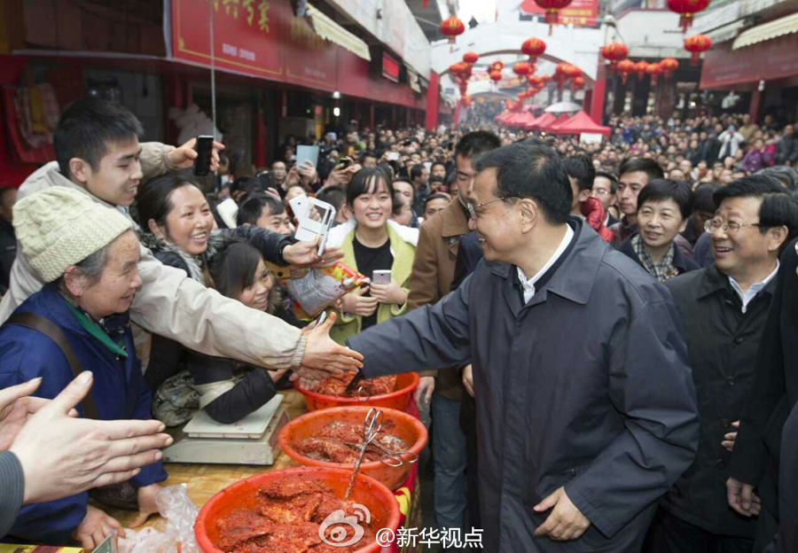 新华网北京2月13日电 据新华社“新华视点”微博报道,13日上午,李克强来到贵州黎平县大市场考察。