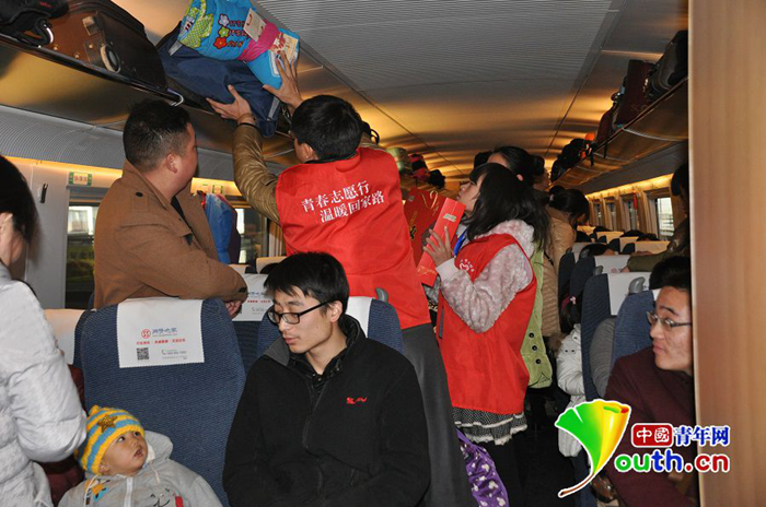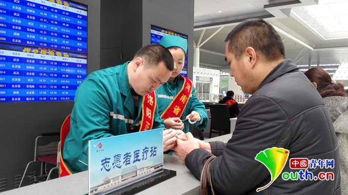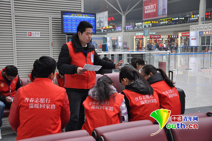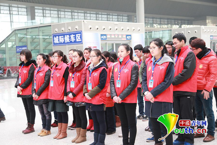 河南2月13日电(记者 裴清波 通讯员 宋清怀) 今年春运,郑州东车站团委共招幕40多名大学生志愿者,为旅客提供重点帮扶、预约服务、答疑释惑、引导购票、免费医疗等服务项目。
