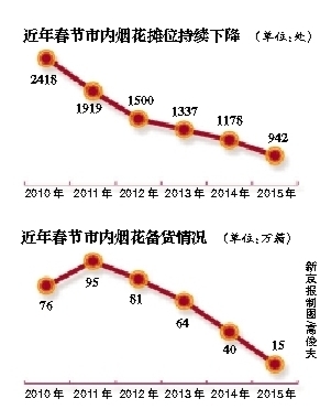 ●2015年 市内烟花零售摊点量5年来首次跌破1000处,销售期比往年缩短10天