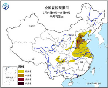 14日至15日,华北中南部、黄淮、江淮等地有轻到中度霾,局地重度霾。受冷空气影响,15日白天起上述地区的雾霾天气逐渐减弱消散。