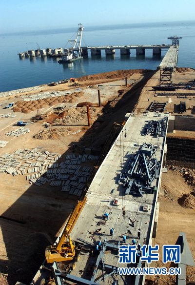 这是在建设中的大连30万吨级矿石码头(2004年2月17日摄)。