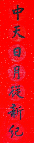 我初中毕业在家没事干,大哥给我找了本柳公权的字帖让我练。没练几天,就忙于高考。等到了大学三年级,学习比较宽松了,又想起练毛笔字来,开始买字帖练。我练的是颜真卿的《颜勤礼碑》,练了两三年,稍微像点样,大哥就不愿意写了,让我来写。我也年少气盛胆子大,从此开始为乡邻们写春联了。父亲自然高兴,就教我怎样叠纸,七言联这样叠,五言联这样叠,九言联这样叠,等等。