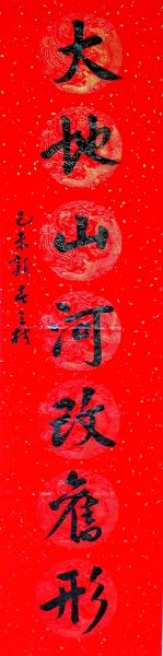 每年腊月我放假回家,父亲就开始准备,查看墨汁是否够用,毛笔是否能用。腊月二十以后,到我家求写春联的乡邻们就早早把红纸备好,开始排队。每天早上起来,将八仙桌摆在堂屋中央,我就开始叠纸挥毫,一副副、一对对,写好的大红春联摆满屋子。写完一家,又写一家。父亲从厂里下班回来,坐在旁边看着,不时加以点评。从腊月二十一直忙到腊月三十下午,别人家的春联都已经贴上了,我们家的还没有写。直到黄昏的时候,我才匆忙把自家的春联写完贴好。等干完活,迎接新年的鞭炮声已经在村子里此起彼伏地响起,家家炊烟袅袅,香烛辉煌,热腾腾的饺子端上桌,一家人团团围坐,迎来新的一年!
