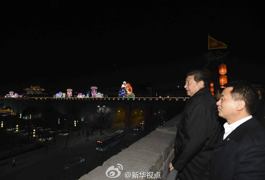 习近平总书记2月15日晚上登上西安古城墙,同市民亲切交流。新华社记者霍小光、李学仁、李涛