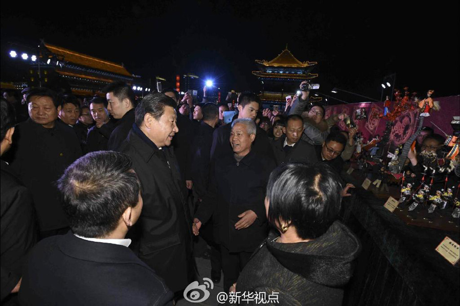 习近平总书记2月15日晚上登上西安古城墙,同市民亲切交流。新华社记者霍小光、李学仁、李涛