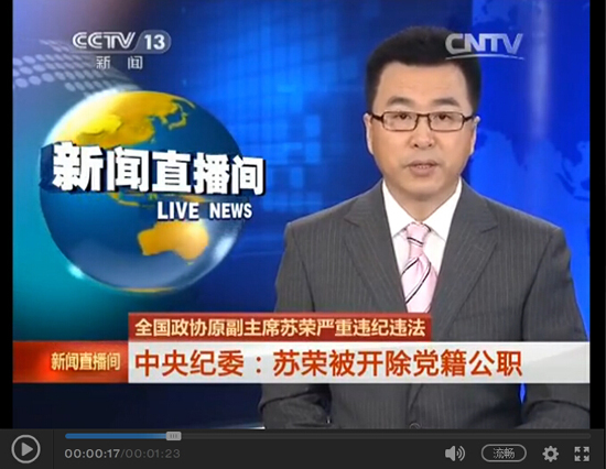2014年6月14日,中央纪委监察部网站发布消息,苏荣涉嫌严重违纪违法,接受组织调查。