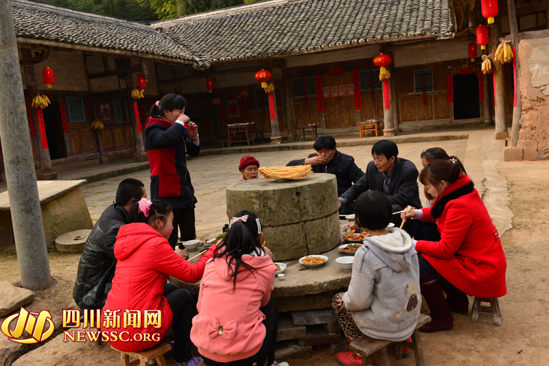阆中奇俗 村民磨盘上吃团圆饭纪念“春节老人”