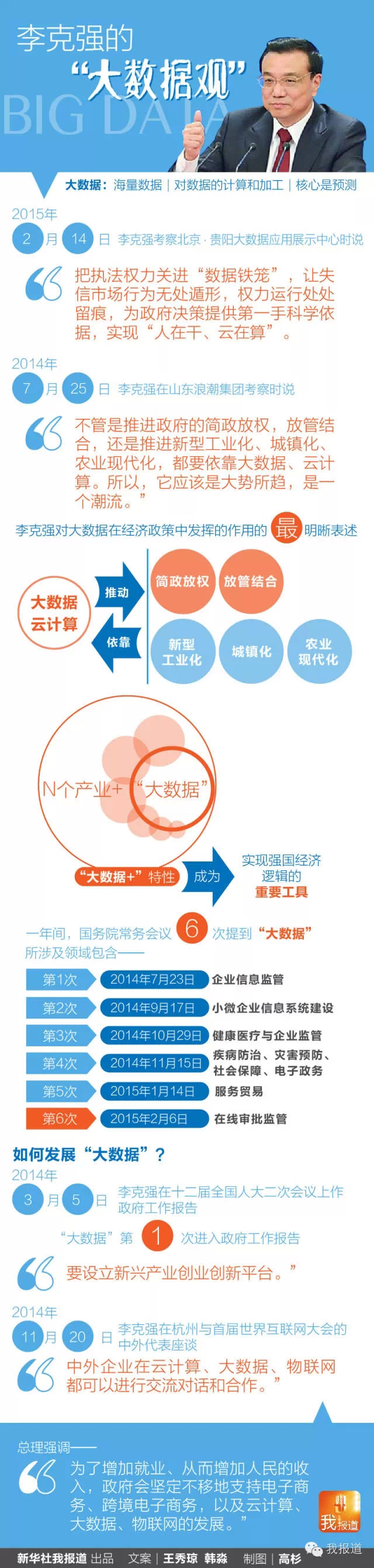 不管是助推简政放权、完善政府监管,还是调整经济结构、激发大众创新,李克强都不忘提醒要利用“大数据”。