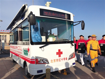北京市红十字会999急救中心副院长田振彪介绍,今年1月,999研发了“人道救援保障专用车”样车,车上配置有医疗检查床、心电图机等专业医疗器械和必要的急救用品,还有音视频无线传输系统。同时,配有“一医一护”的工作人员。