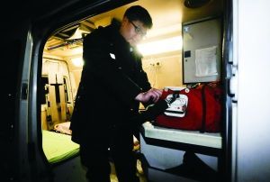 120急救车司机王雅东除夕夜巡诊。记者 吴宁 摄