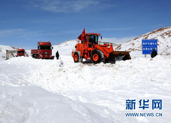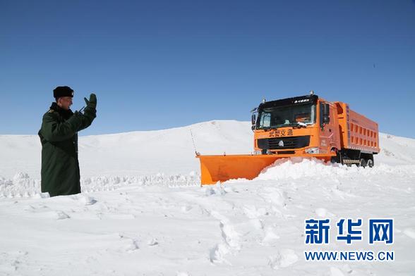 2月19日,战士指挥推雪车进行道路积雪清理作业。 2月19日大年初一,新藏公路位于海拔4900米的西藏阿里马攸木拉段部分道路受除夕夜小雪和强风积雪影响通行受阻。经过担负公路养护保通任务的武警交通四支队官兵近2小时的紧急抢通救援,受困人员车辆被解救,道路通行恢复。 新华社发(涂敦法摄)