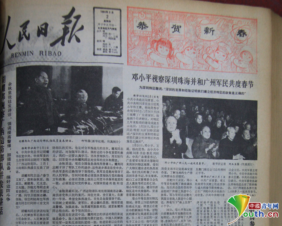 1984年大年初一,人民日报的头条报道。中国青年网通讯员 王燕新摄