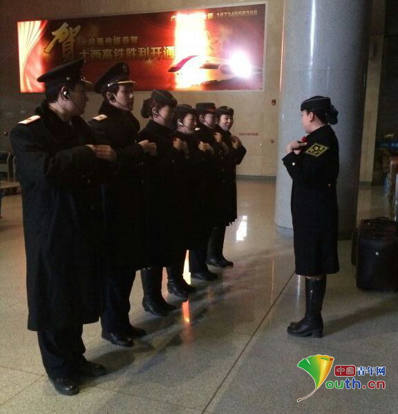 太原客运段的乘务员们做出发前的最后准备。太原客运段供图