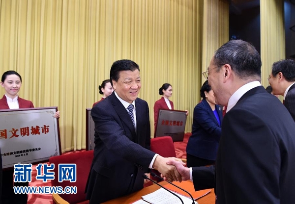 习近平在会见第四届全国文明城市、文明村镇、文明单位和未成年人思想道德建设工作先进代表时强调 人民有信仰民族有希望国家有力量 锲而不舍抓好社会主义精神文明建设 刘云山参加会见并在表彰大会上讲话