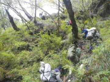 在翻山越岭中,调查队员除了要时刻防范蛇虫的攻击,更让他们头痛的是旱蚂蟥,虽然穿了厚厚的布袜,但还是经常被咬到。但更艰苦的,是高海拔地区的雨雪山风。
