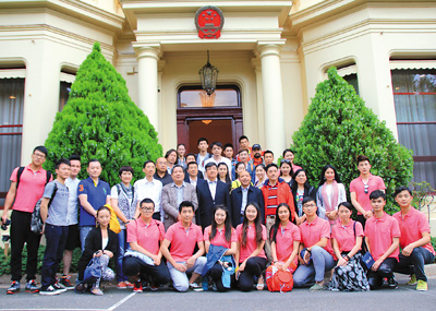 图为2015年“文化中国·四海同春”大洋洲艺术团成员与中国驻墨尔本总领事馆成员合影。