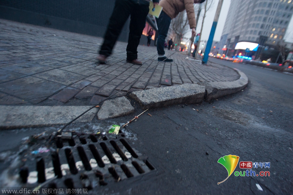 2015年3月2日,长春一马路口,一条钢丝绳将井盖和路灯杆锁在一起,两头又分别用铁锁锁在两个物体上,有的市民称,可能是为了防止井盖被盗,实在是太拼了!