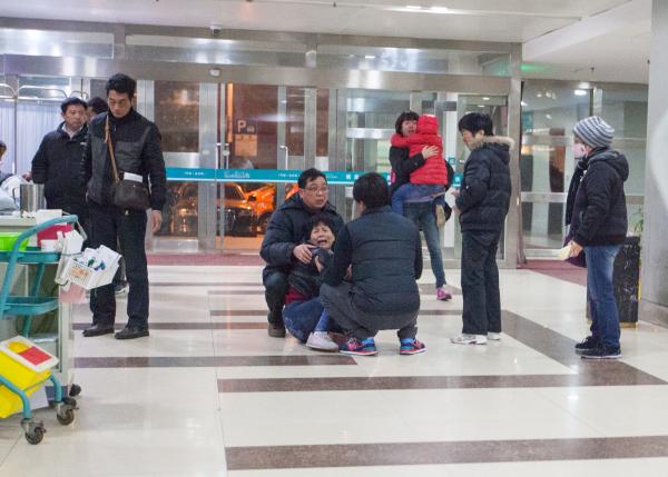 3月3日,上海第五人民医院,不幸身亡者的家属在医院门外。