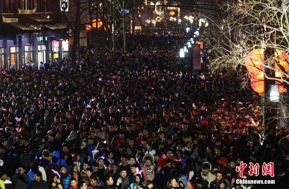 3月5日晚,数十万市民和游客前往南京夫子庙景区内欣赏秦淮灯会,瞬间开启“人人人人人”模式。泱波 摄