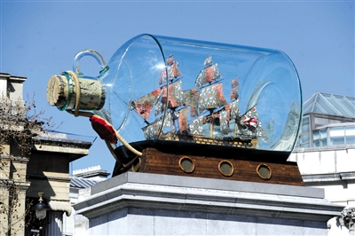 特拉法加广场上的纳尔逊圆柱就是为了纪念在特拉法加海战中带领舰队击败拿破仑的纳尔逊海军上将。艺术家将纳尔逊战舰胜利号的精美复制品放入一个4.7米长、直径2.8米的玻璃瓶中。