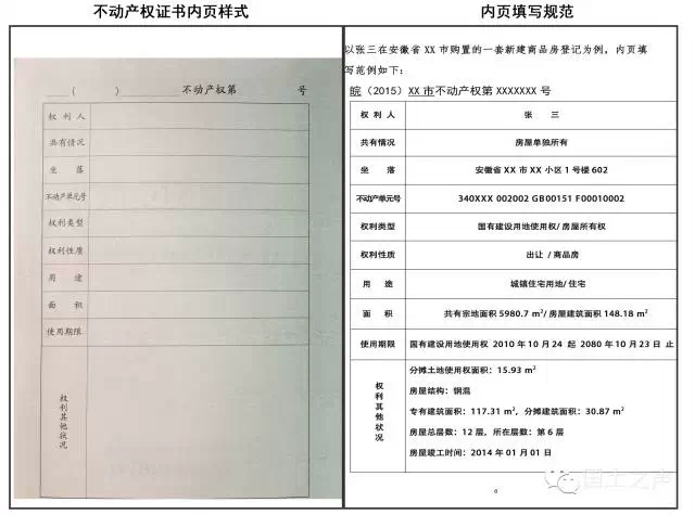 不动产权证书内页样式、内页填写规范