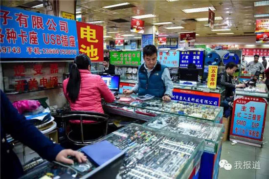 图为2月5日,来自深圳的“创客”马天驰在华强北一家电子元器件市场挑选产品。毛思倩摄影