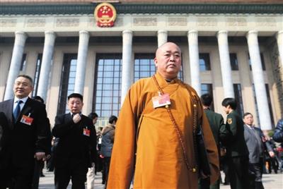 3月5日,人民大会堂,十二届全国人大三次会议开幕式,释永信走出会场。新京报记者 薛珺 摄