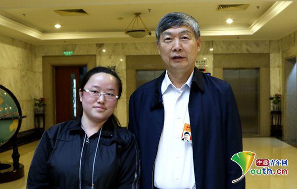 全国人大代表、华中科技大学原校长李培根与记者合影。