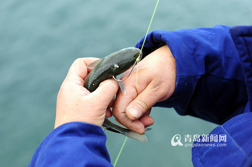 组图:青岛市民钓鱼不用饵 一天能钓40斤