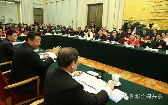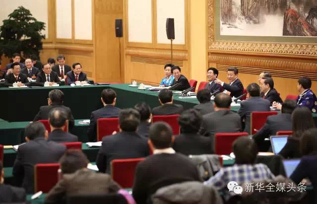 2015年3月9日,中共中央总书记、国家主席、中央军委主席习近平参加十二届全国人大三次会议吉林代表团的审议。新华社记者 兰红光摄
