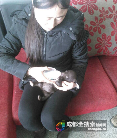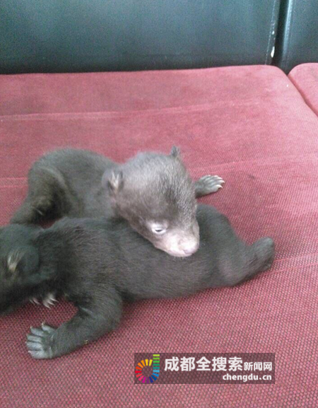 原标题:村民捡回两只黑熊幼崽 20天吃了上千元奶粉(图)