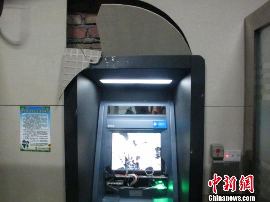 ATM上面也被弄出了一个窟窿,瓷砖已经损坏 金华公安 摄